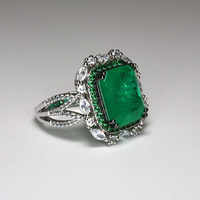 Magiczny szmaragd otoczony cyrkoniami w rodowanym srebrze